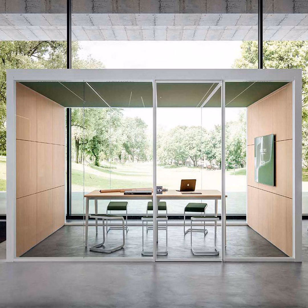 La cabine acoustique pour 6 à 8 personnes DODICI offre un espace privé, insonorisé et confortable, parfait pour les environnements de travail exigeants. Disponible en deux configurations, elle garantit une excellente isolation phonique et un design moderne. Idéale pour les bureaux, les espaces de réunion ou les studios, elle permet une personnalisation complète de ses finitions et options (éclairage, câblage, matériaux).