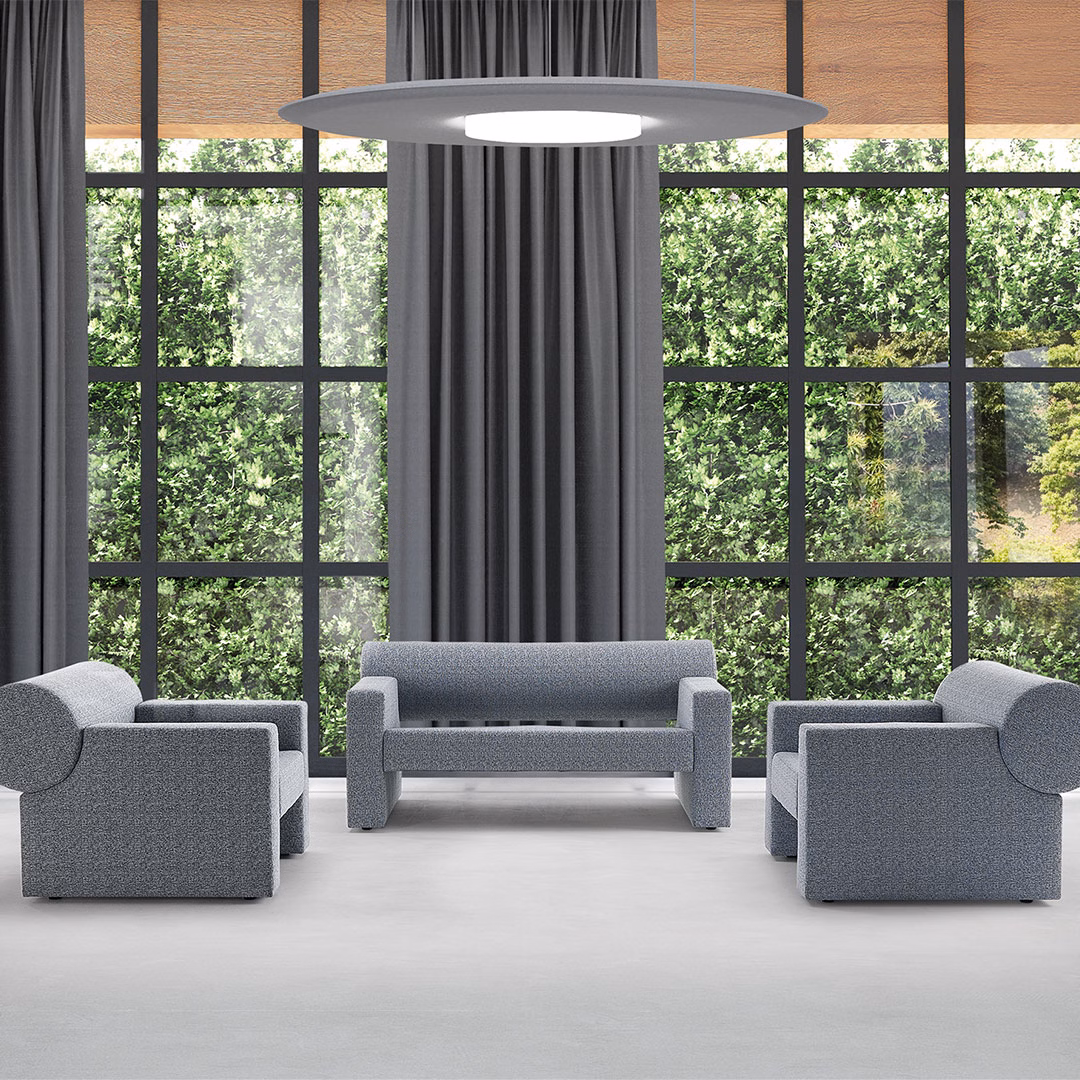 Le fauteuil acoustique 2 places CALMA est une solution élégante pour créer un espace de calme dans les open spaces, halls ou zones lounge.