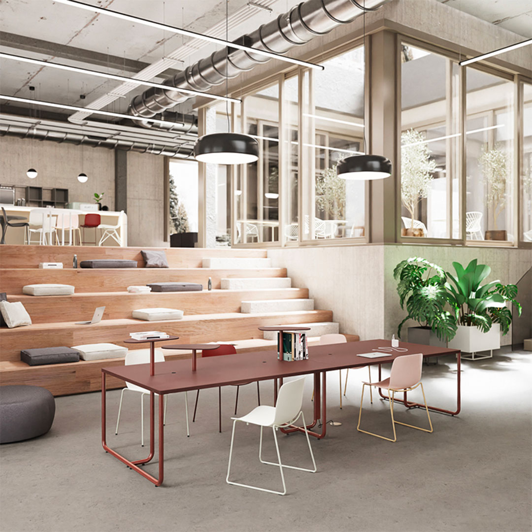 Le bureau bench 4 personnes SKYLINE est une solution idéale pour créer un espace de travail partagé en open space ou coworking, tout en conservant une vraie signature design. Sa structure tubulaire dessine un trait continu qui soutient le plateau, et la configuration en vis-à-vis permet d’installer 4 postes (2 de chaque côté) dans un encombrement optimisé.