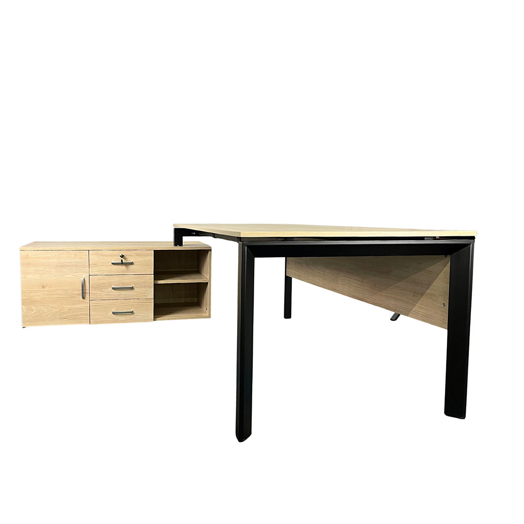 Ce bureau est également équipé d’un panneau frontal et d’un module de rangement intégré, pour une organisation fluide et élégante.