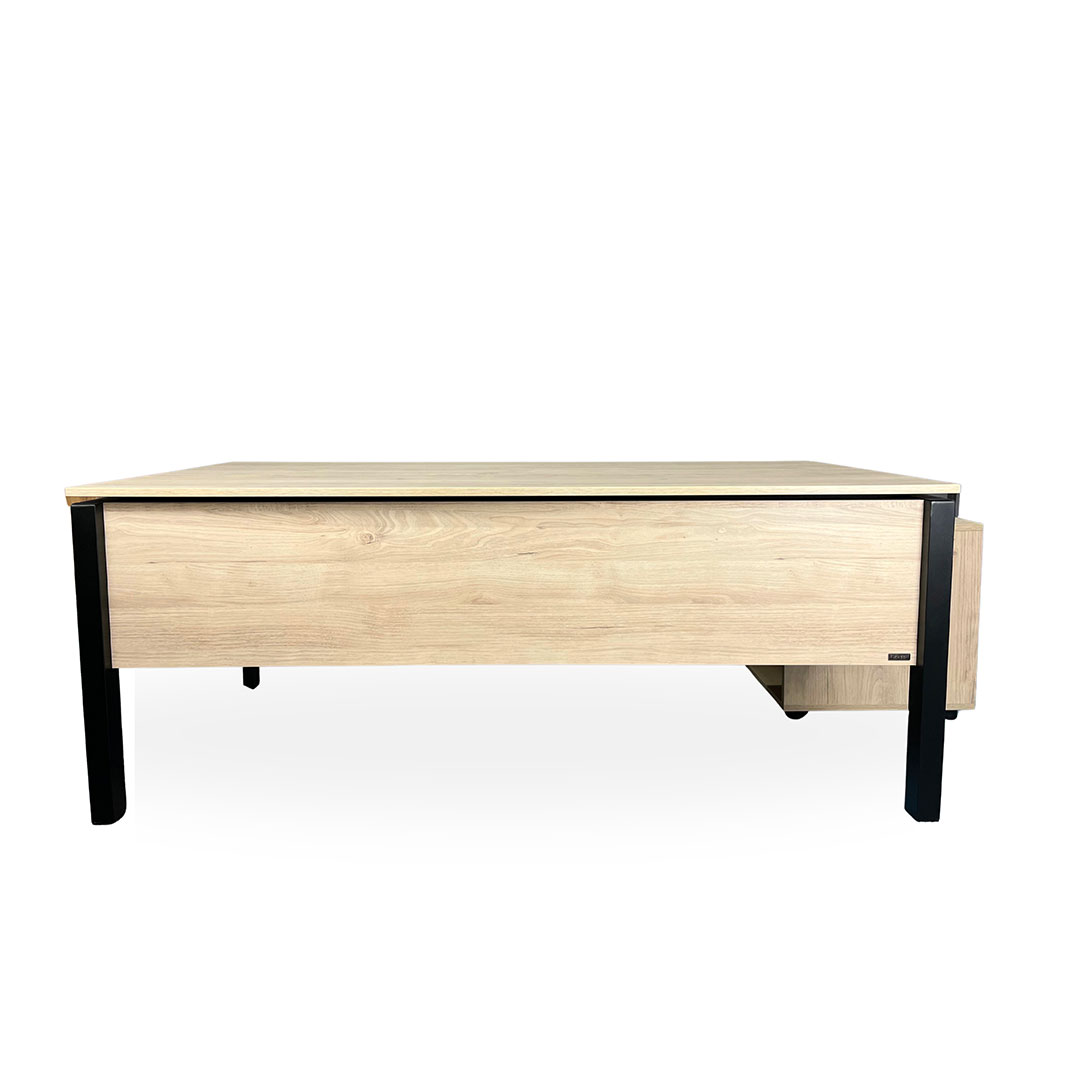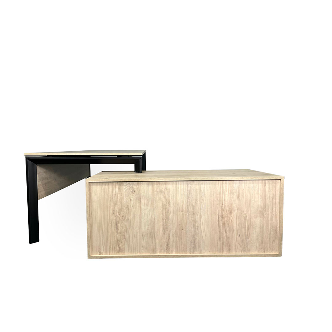 Son plateau en mélaminé de 18 mm assure robustesse et durabilité, tandis que ses pieds au profil pentagonal en métal époxy garantissent une parfaite stabilité.