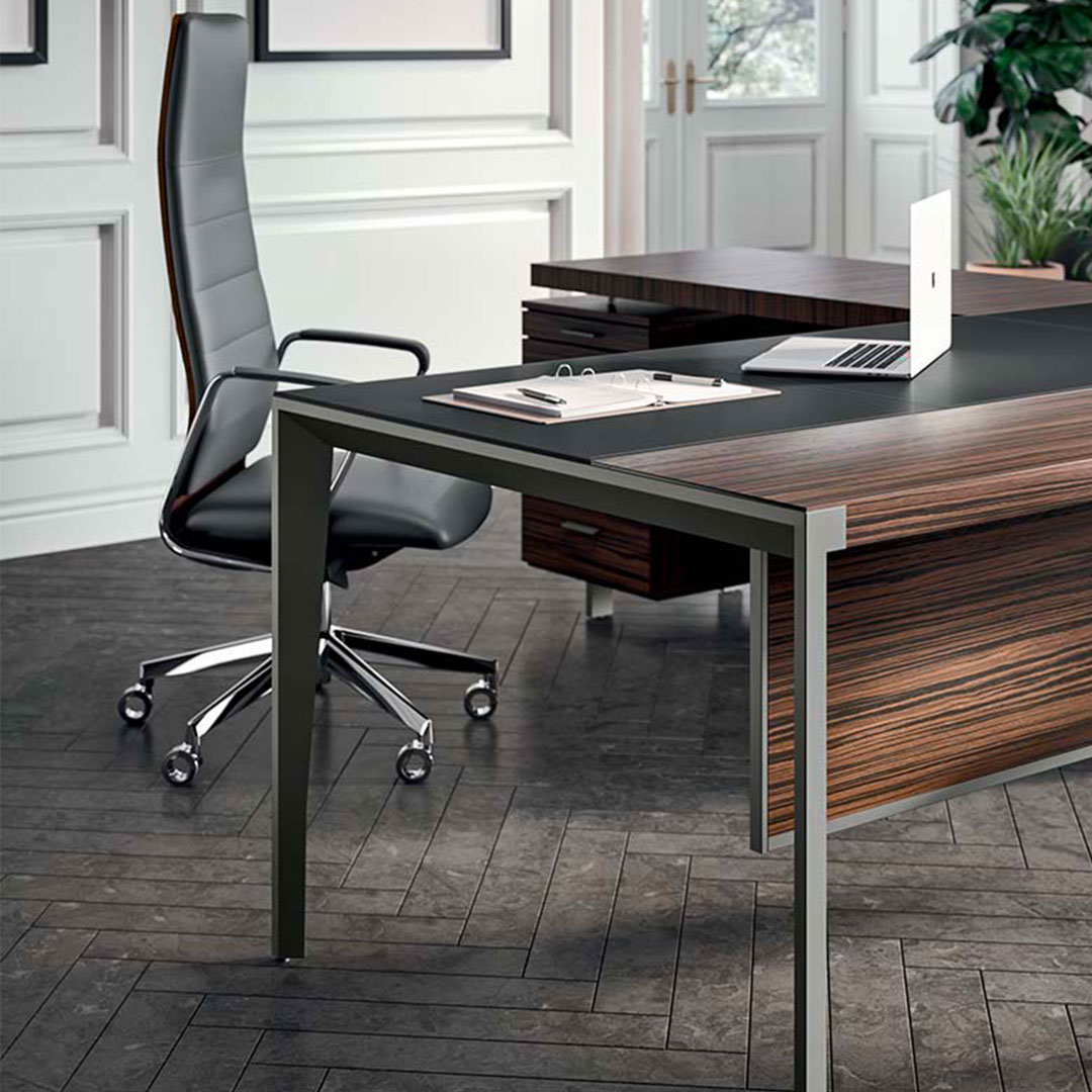 Le bureau de direction HAMBOURG avec retour et conteneur avec caisson constitue une solution premium pour les dirigeants et professionnels recherchant un poste de travail spacieux, structuré et élégant. Ce modèle intègre un large plateau principal, un retour fonctionnel et un conteneur multiservice incluant un caisson 3 tiroirs avec système soft-closing. Il assure une organisation parfaite, un confort maximal et une esthétique irréprochable.