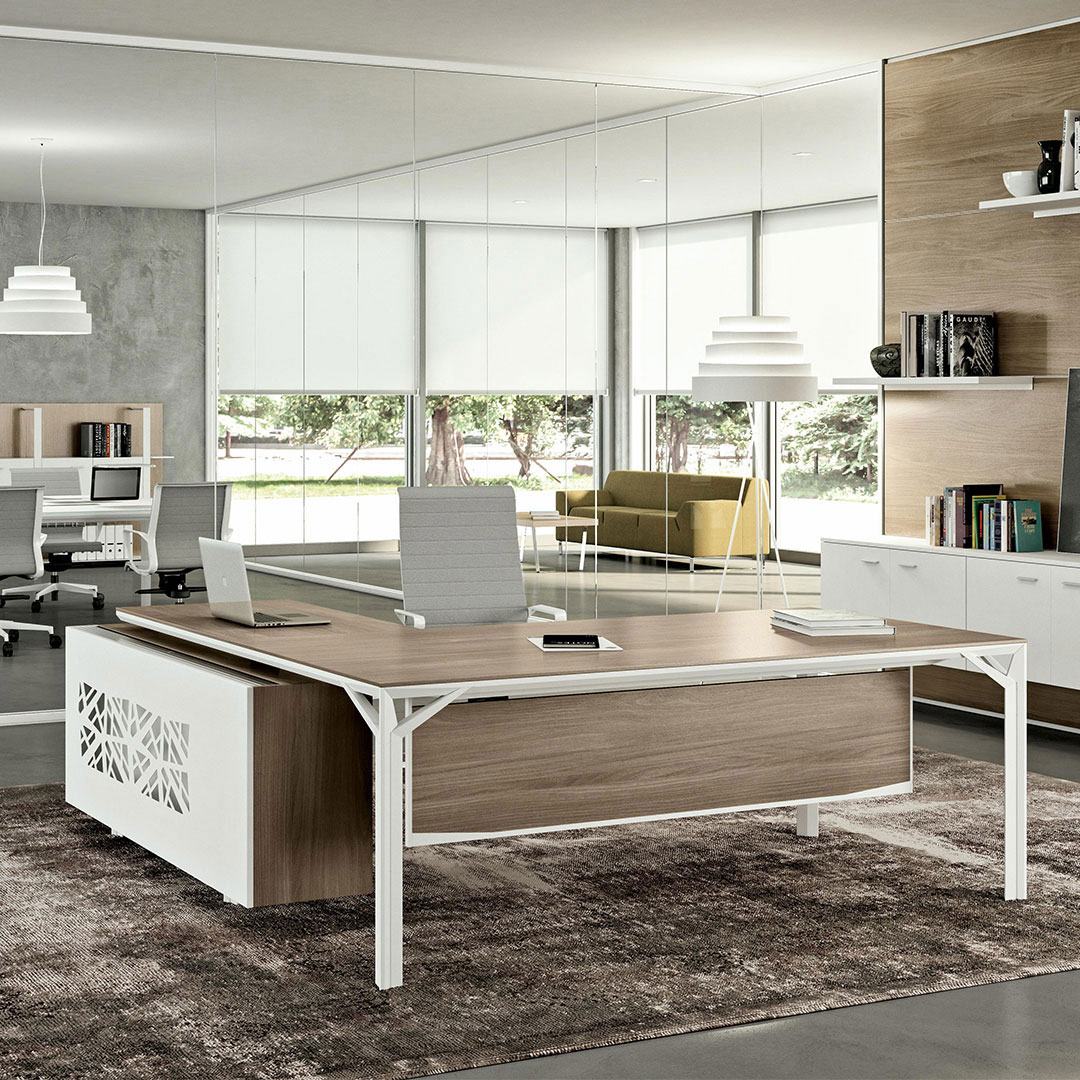 Le bureau de direction X8 est disponible dans une version avec retour et rangement intégré ainsi qu’en version sur crédence.
