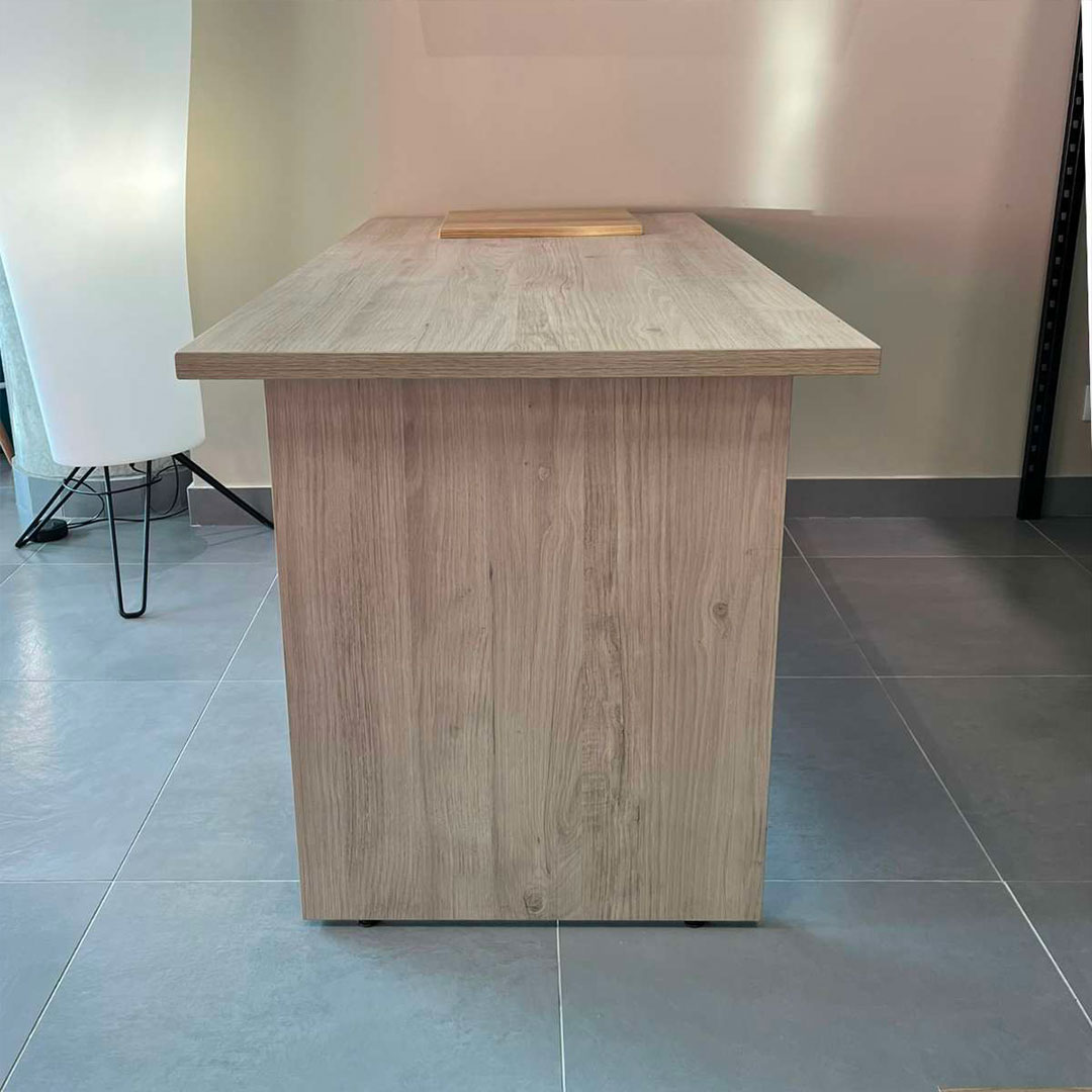 Avec son piétement panneau et son plateau de 30 mm d’épaisseur, sa conception solide