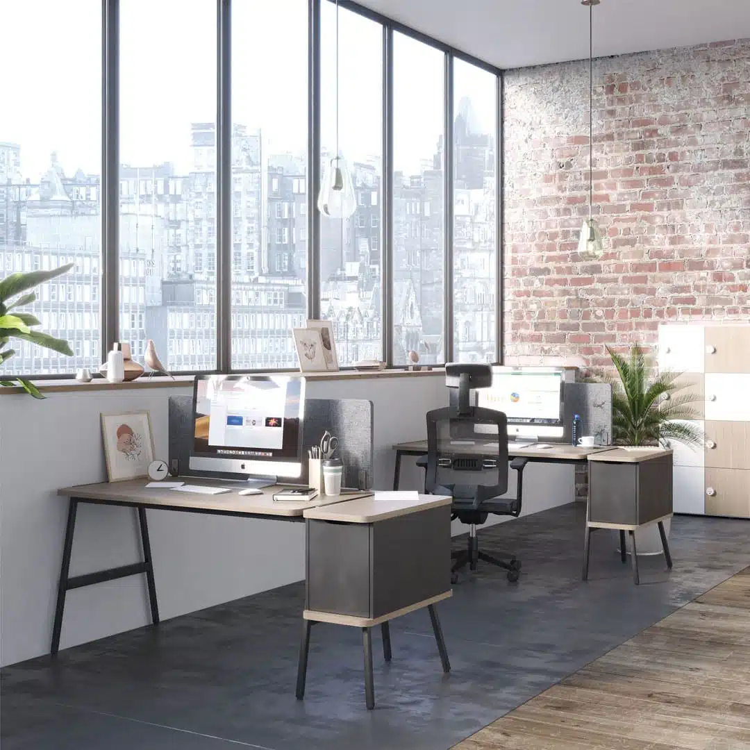 Les photos présentent des configuration du bureau Ohio avec des éléments de retour et caisson. Pour ces options, merci de faire une demande de devis.