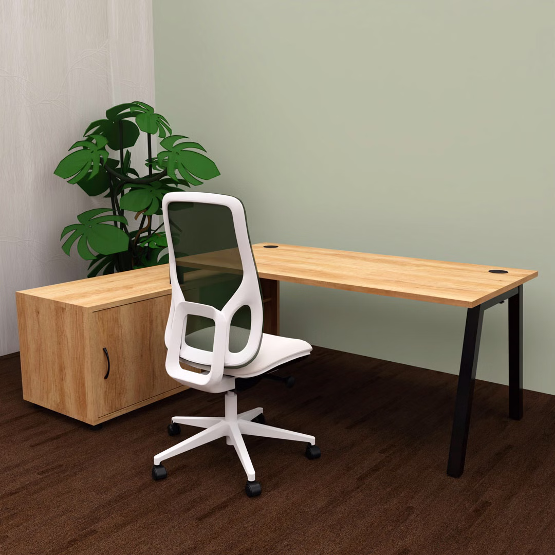 Le bureau PARIS avec B-box incarne un équilibre parfait entre design contemporain et efficacité au quotidien. Grâce à son piétement trapèze en métal laqué et sa console latérale intégrée, il offre une solution tout-en-un idéale pour les environnements professionnels partagés ou individuels. Cette version avec B-box permet de structurer visuellement l’espace tout en intégrant des rangements pratiques et une gestion optimisée des câbles.