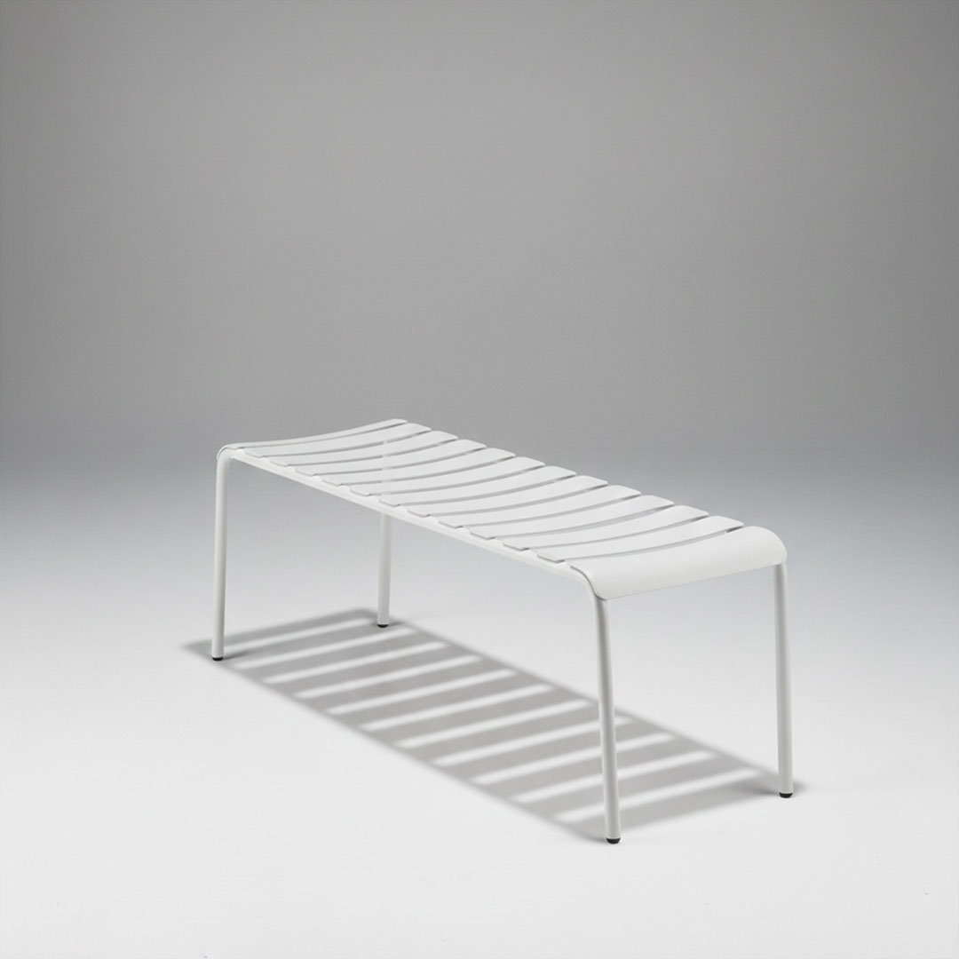 Le banc AUSSEN se distingue par une silhouette simple, élégante et volontairement sobre. Il permet de créer des espaces lisibles et cohérents, en laissant la place à l’architecture et au décor. La structure en aluminium contribue à une lecture légère et soignée, tout en conservant une assise stable grâce à son format quatre pieds.