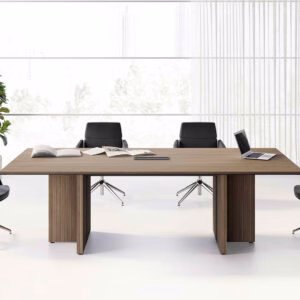 - Table de réunion rectangulaire : adaptée aux réunions formelles ou aux groupes plus nombreux. Elle structure l’espace et permet une organisation claire