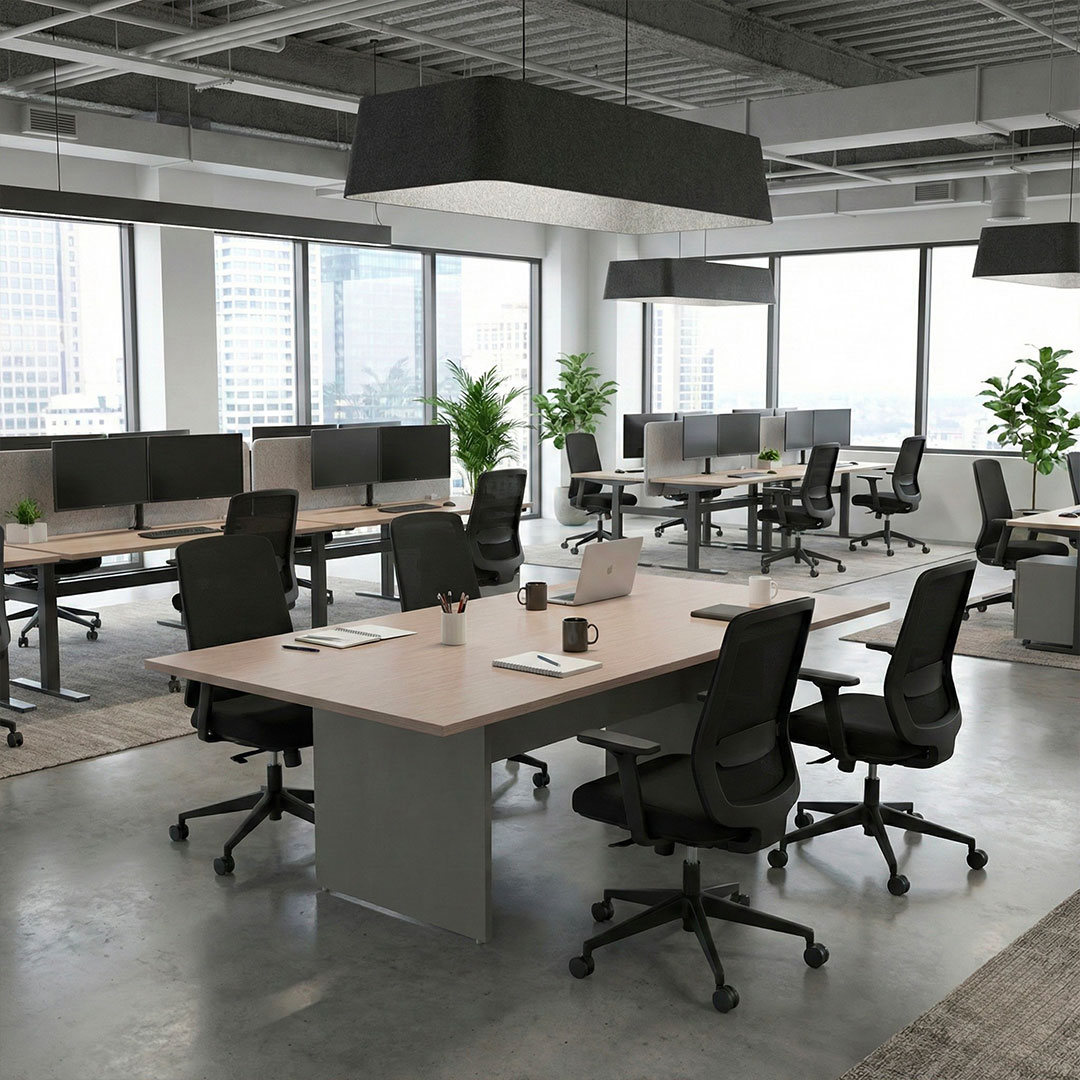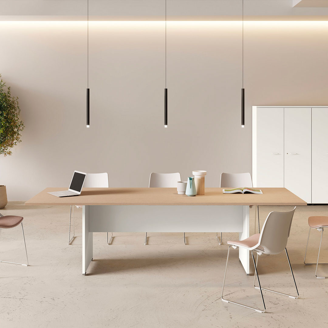 Cette table s’intègre facilement dans une salle de réunion dédiée, un espace projet ou une zone collaborative. Son format rectangulaire permet une implantation simple et efficace. Elle convient autant aux réunions rapides qu’aux échanges plus longs, avec une circulation fluide autour de la table et un rendu cohérent avec du mobilier de bureau contemporain.