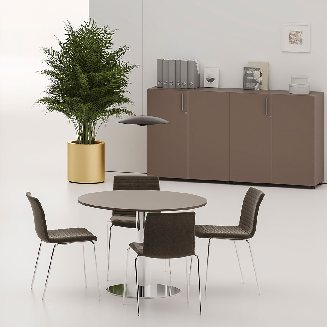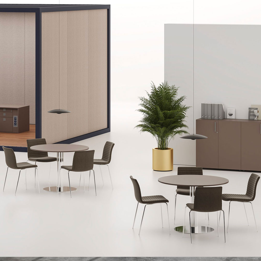 La table de réunion ronde ADRIA a été imaginée pour favoriser les échanges dynamiques et les discussions naturelles au sein des environnements professionnels.