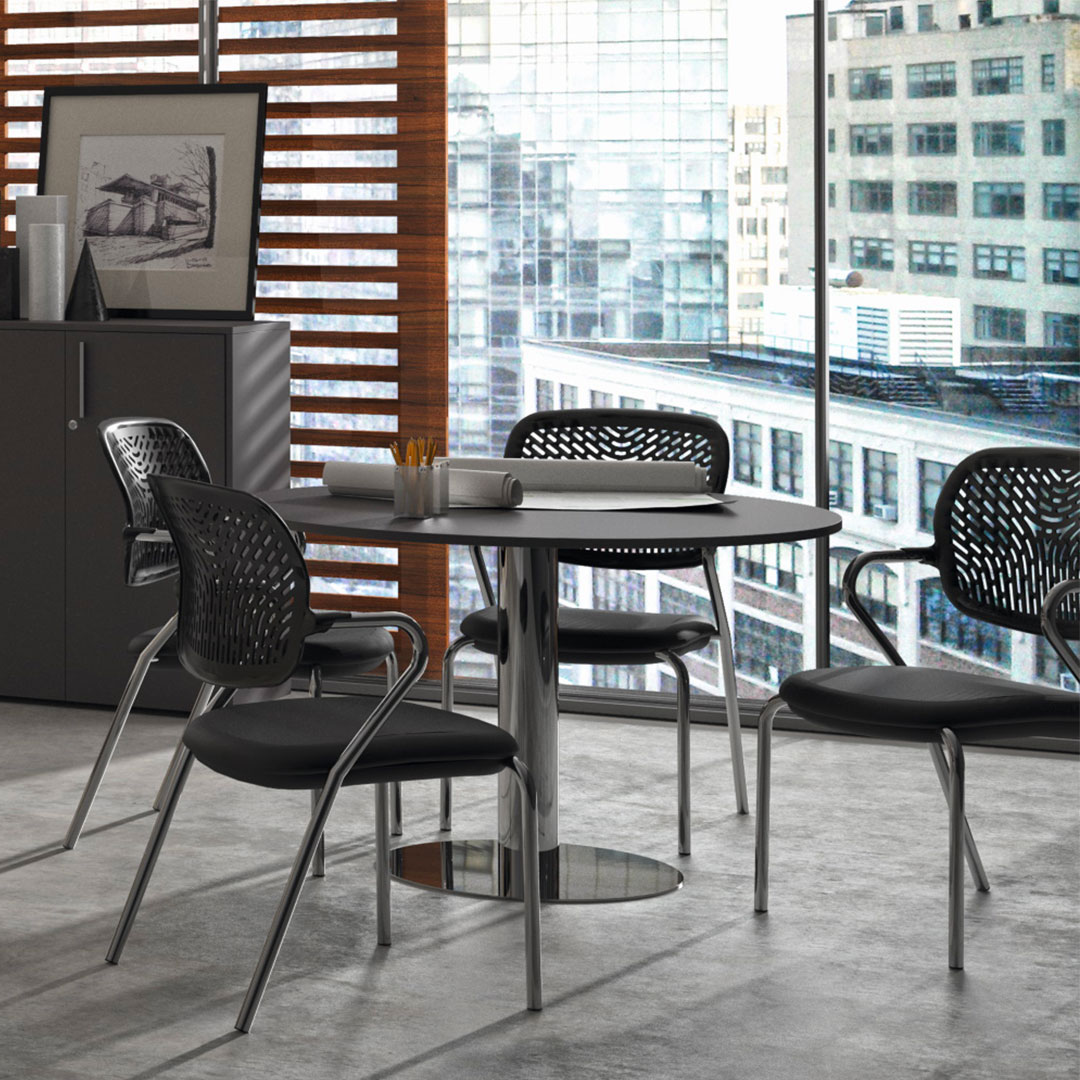 Sa forme ronde renforce la communication entre les participants tout en optimisant la place disponible.